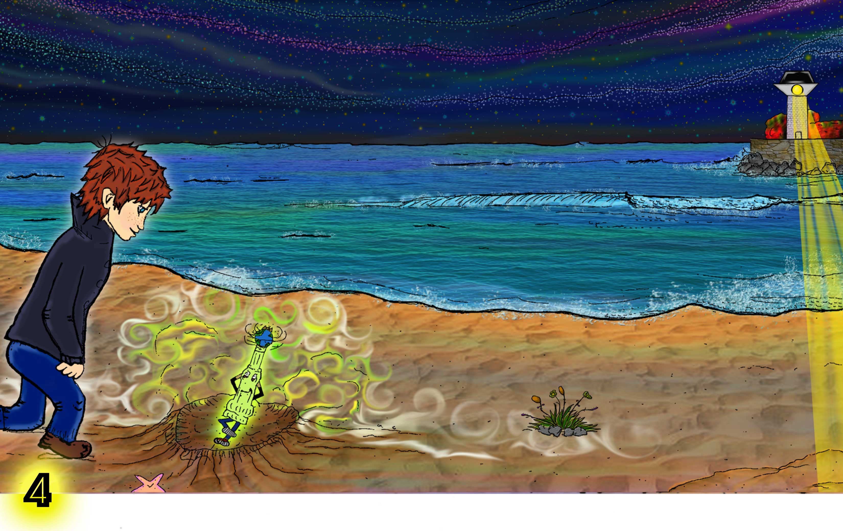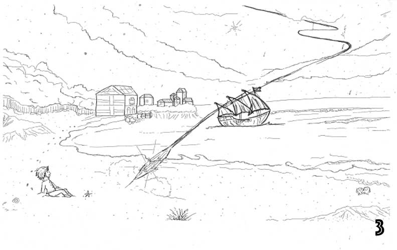 On the way home Jacob stopped by the shore to gaze at the star painted sky. Tonight, Jacob noticed a magnificent constellation. As he gazed upon it he wished for his father’s return. As if he had been heard, a star twinkled as though it was winking at him. Then the star started to zig-zag across the sky.