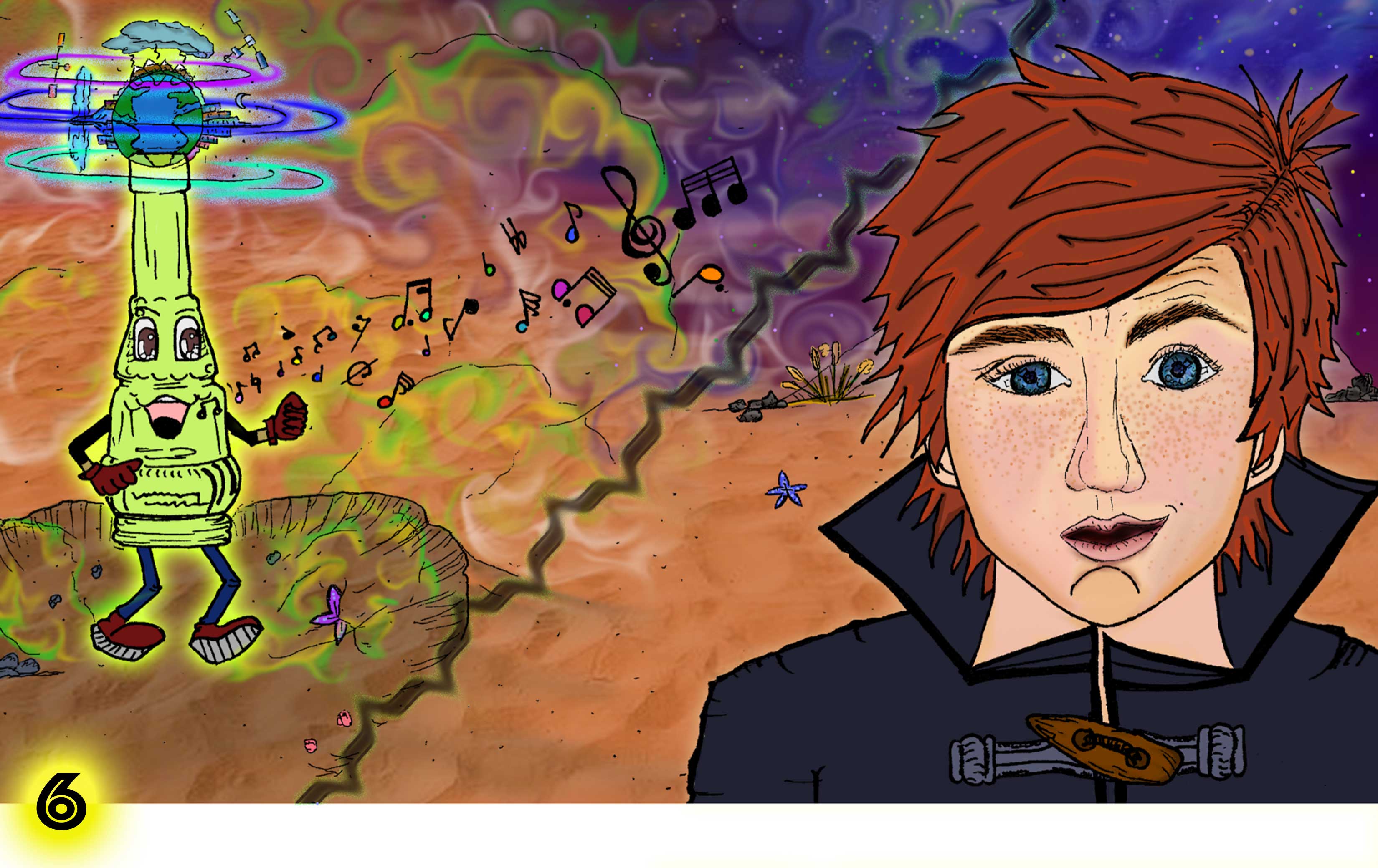 Jacob slowly approached the figure only to find that it was a small green bottle with twiggy thin arms and legs. The bottle had a round globe-like cork that looked like a spinning planet on top.